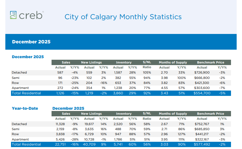 The narrative for November and December was defined by a significant boost in supply. For the first time in years, Calgary buyers aren’t facing a “chronic shortage” but rather a market with healthy options.